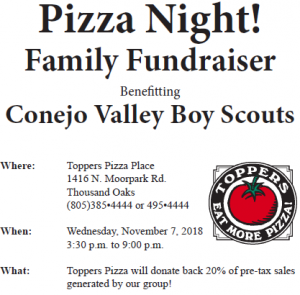 Support the Scouts of Conejo Valley! Share on Facebook Share Share on TwitterTweet You Might Also Like Here’s the Scoop: TOHS Baseball Wins When Get Visit Baskin Robbins – Thousand Oaks November 7, 2018 Remember to Eat at Chipotle and the Alzheimer’s Association Benefits – Westlake Village; 10/22/18, 4-8 PM October 22, 2018 Eat at Shake Shack and You Support Fire Victims – Westlake Village November 13, 2018